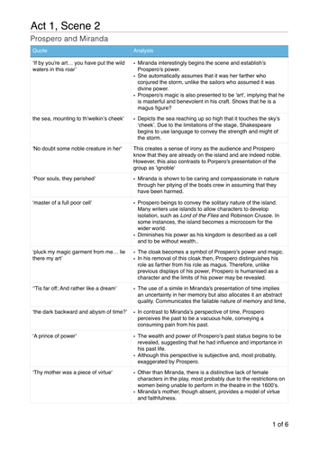 The Tempest Act 1 Scene 2 Analysis Teaching Resources