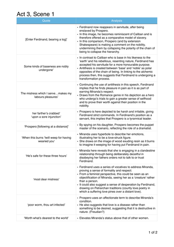 The Tempest Act 3 Scene 1 Analysis Teaching Resources